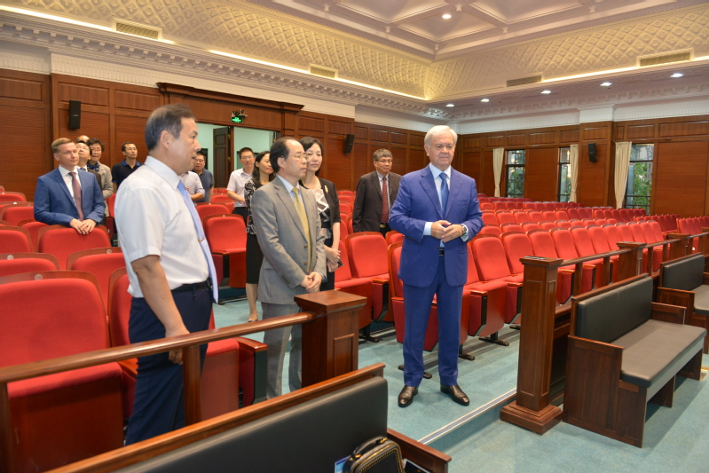 阿里莫夫一行先后参观了中国-上海合作组织国际司法交流合作培训基地、上海纪录片学院演播室、模拟法庭、图书馆,并题词留念。阿利莫夫表示,上海政法学院风景秀丽,人文气息浓厚,对学校硬件设施、人文环境、学生风貌留下了深刻印象,对近年来上合培训基地的贡献给予了充分肯定。
