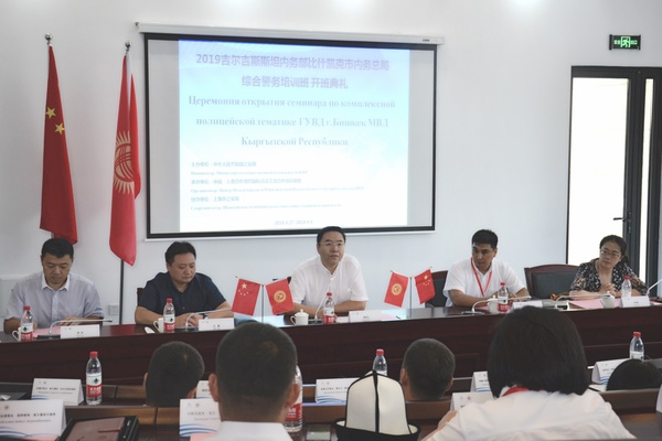 8月28日上午,由中华人民共和国公安部主办,上海市公安局协办、中国-上海合作组织国际司法交流合作培训基地承办的吉尔吉斯斯坦内务部比什凯克市内务总局综合警务培训班开班典礼在上海政法学院中国-上合基地隆重举行。我校党委副书记潘牧天、上海市公安局指挥部国际合作处干部方雷、研修班团长卡德尔库洛夫•伊利亚斯•拉伊姆扎诺维奇大尉、中国-上合基地办公室培训部主任陈校、我校经济管理学院党总支副书记高璐敏等出席开班典礼,开班典礼由陈校主持。