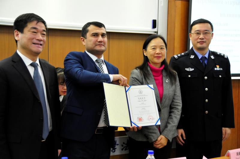 12月8日下午,2019年乌兹别克斯坦旅游警察研修班结业典礼在吉林大学举行,上海政法学院副校长胡继灵、吉林大学法学院党委书记周春国、辽宁省公安厅出入境管理局支队支队长张航、上海政法学院政府管理学院副院长谈谭、乌兹别克斯坦旅游警察研修班团长玛玛索里耶夫及研修班学员、长春段授课教师共同出席此次活动,典礼由吉林大学法学院国际法系主任田洪鋆主持。