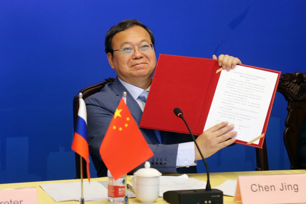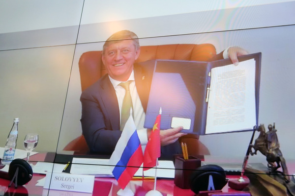 索洛维约夫在合作备忘录上签字