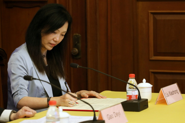 刘晓红主任在合作备忘录上签字