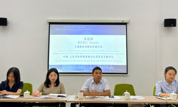 2025年9月17日下午,中国—上海合作组织国际司法交流合作培训基地(以下简称“中国—上合司法培训基地”)在综合楼102会议室召开2025年秋季学期“尚合实习生”见面会。上海政法学院校长办公室副主任、中国—上合司法培训基地党总支副书记荣道福出席会议,见面会由中国—上合司法培训基地办公室行政部负责人范翰琪主持。