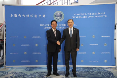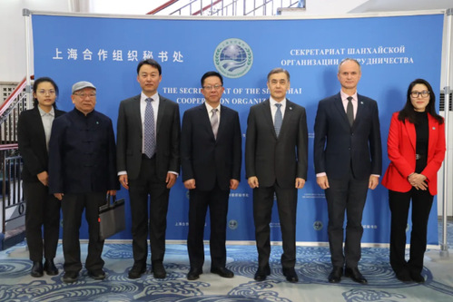 12月4日,校党委常委、副校长,中国—上海合作组织国际司法交流合作培训基地(以下简称“中国—上合司法培训基地”)办公室常务副主任、党总支书记罗立刚率团赴上海合作组织秘书处拜会了上海合作组织秘书长叶尔梅克巴耶夫。