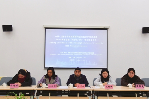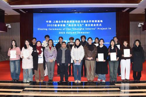 1月4日下午,中国—上海合作组织国际司法交流合作培训基地(以下简称“中国—上合司法培训基地”)2025年秋季“尚合实习生”项目结业仪式在综合楼105顺利举行。上海政法学院校长办公室副主任、中国—上合司法培训基地党总支副书记荣道福出席仪式。仪式由中国—上合司法培训基地办公室行政部负责人范翰琪主持,行政部教师代表及全体“尚合实习生”参加仪式。